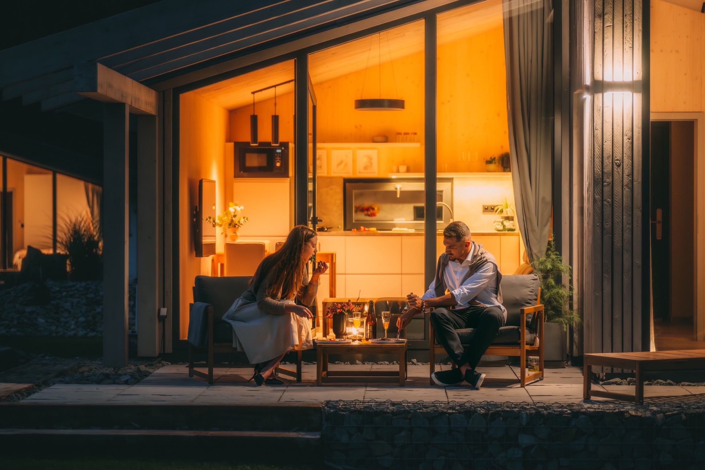 Atmospheric lighting, cozy furnishings, and a storybook setting perfect for couples.